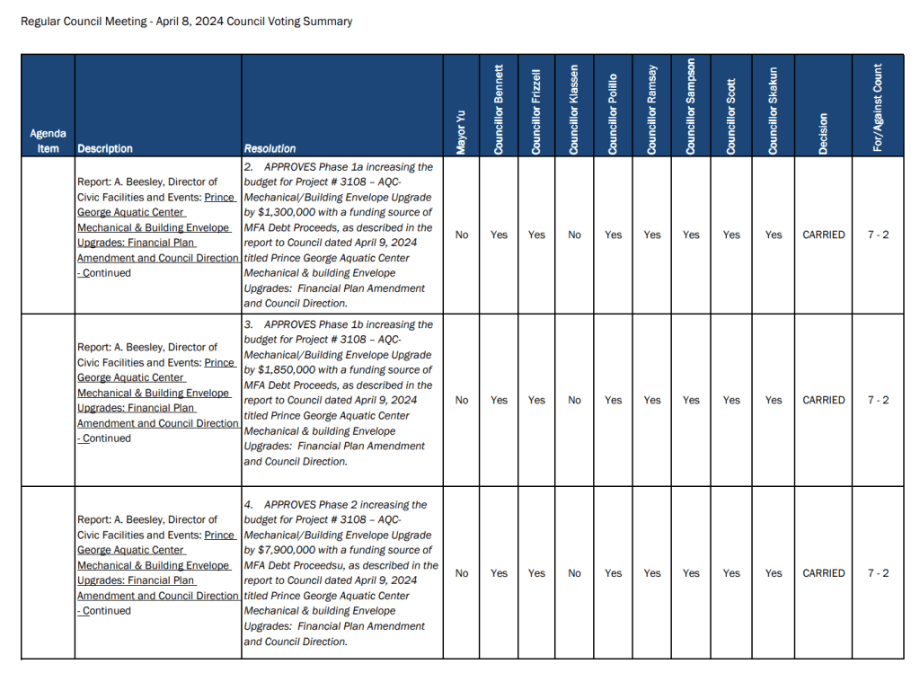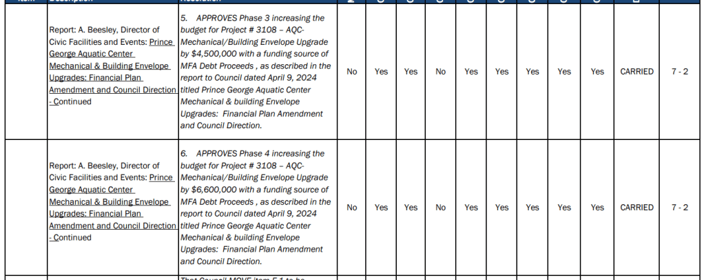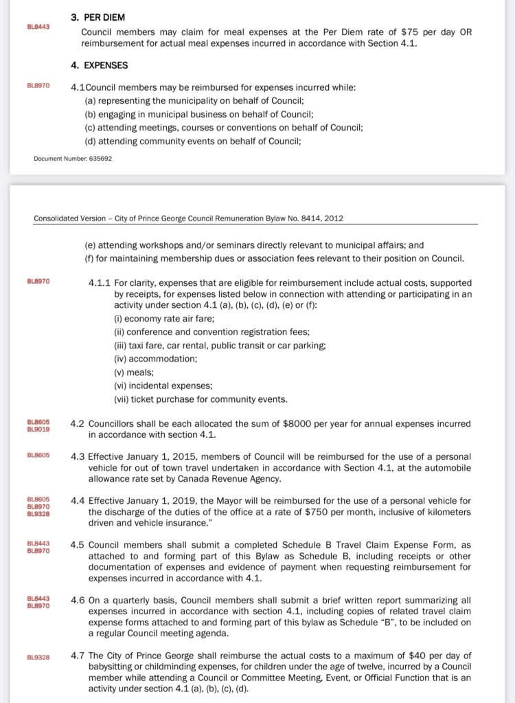 I opposed the original motion because I felt this was redundant due to the SOFI reporting already providing this information, and also, this to me is overstepping our governance role and delving into operations. I felt that with only 9 employees identified in the motion being required to do additional reporting, this would create some public criticism into things like professional development training these individuals are taking; it would impact morale due to public scrutiny of only some employees receiving additional twice yearly criticisms over spending that has been approved in the budget set by council. Finally, as Prince George is the only municipality in all of BC to adopt this practice, I also worried that this would impact our recruiting efforts and succession planning. Despite my objections, the motion narrowly passed.